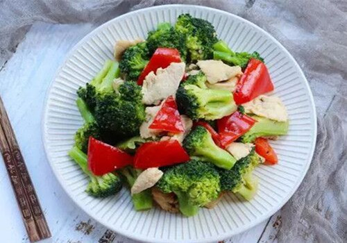 推荐理由:西兰花中维生素A及胡萝卜素含量极为丰富,且热量较低,是减肥期间比较推荐的食材。鸡肉蛋白质含量较高,有增强体力,强壮身体的作用,把这两种健康食材搭配在一起,不仅颜色鲜亮,口感也更为丰富。 准备食材:西蓝花250g,鸡胸肉100g,红椒半个。姜丝、蒜片、葱花少许。少许盐、胡...